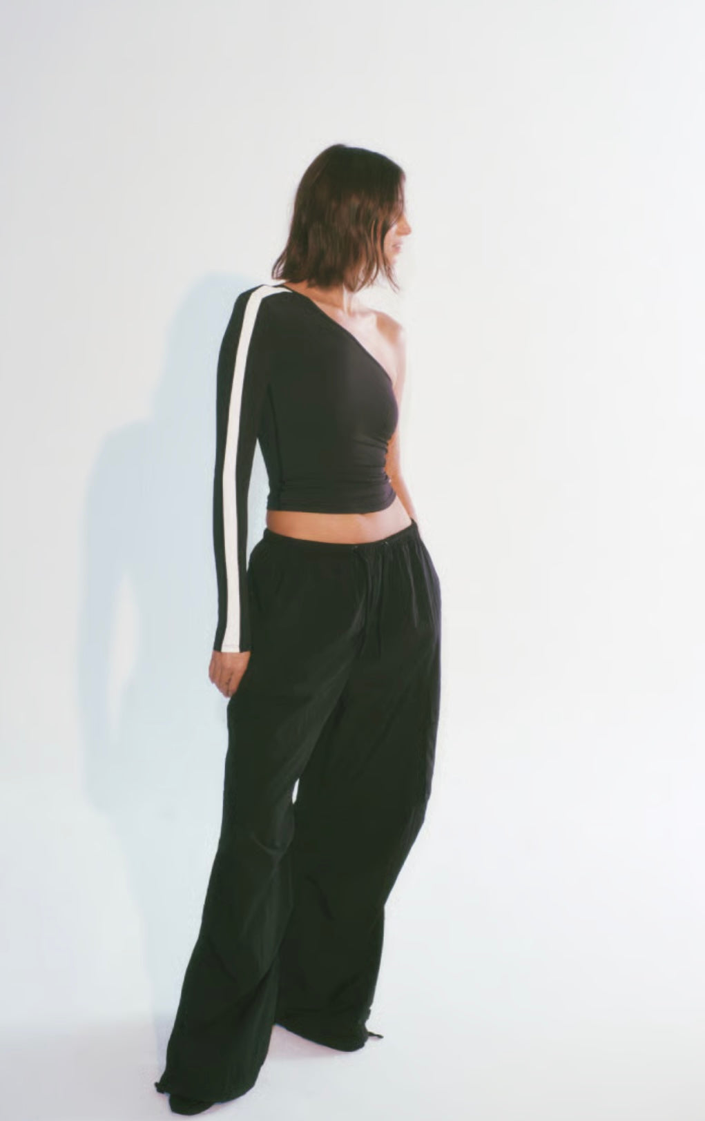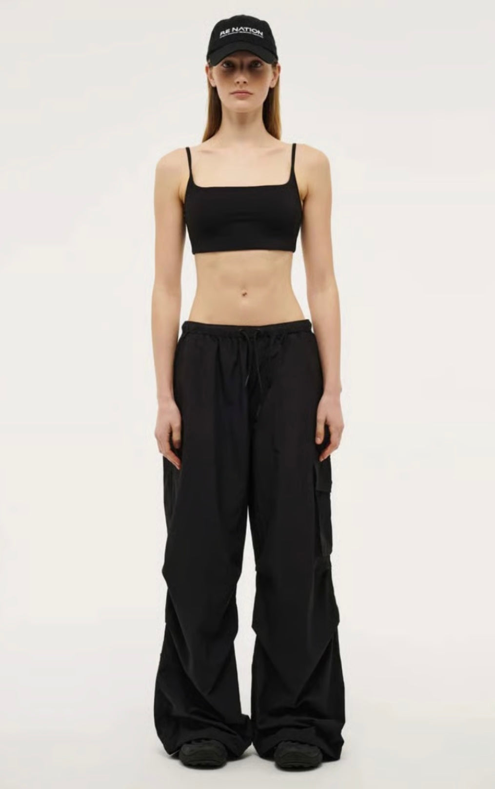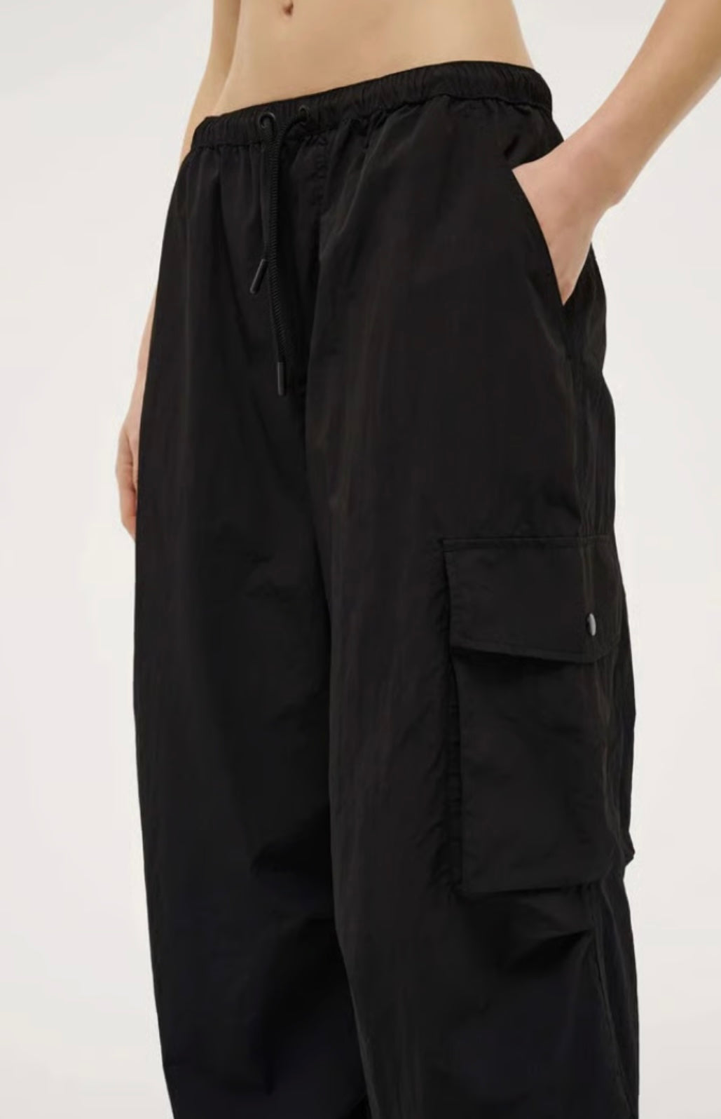 SOFT SPRAY FABRICATION. OVERSIZED FIT CARGO PANT. DRAWCORD AT WAIST AND HEM CUFF. BACK POCKET. SIDE POCKET ON LEFT. 2 X SIDE SEAM DARTS ON LEG. SILICON LOGO ON BACK POCKET.